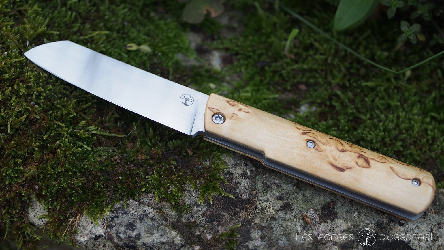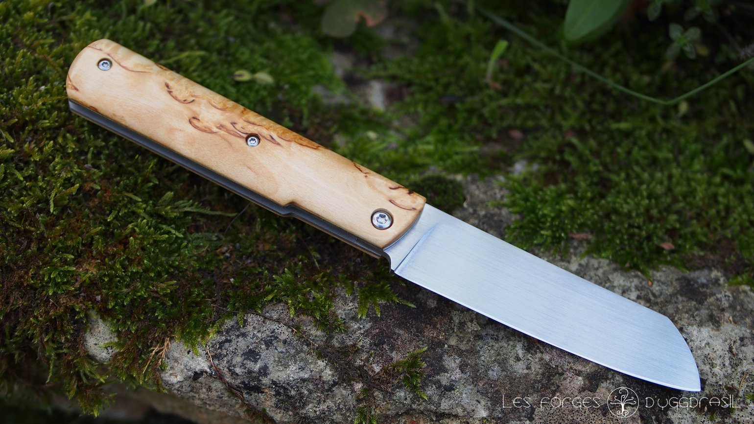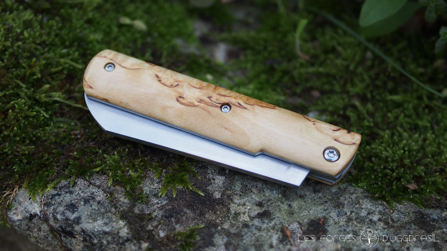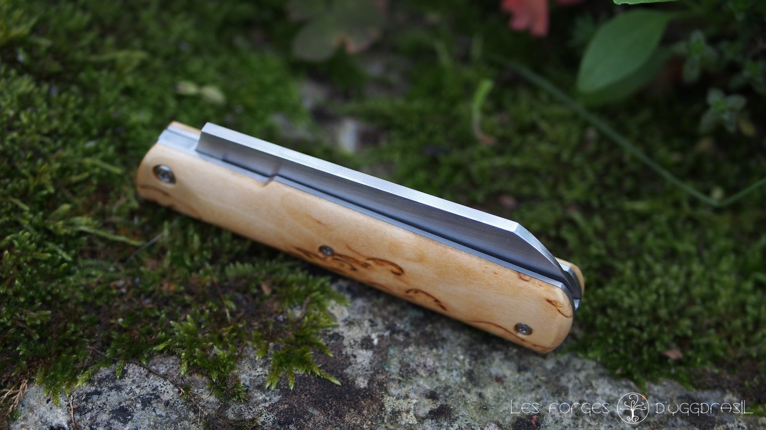 Les plaquettes sont en bouleau madré, la visserie est en inox.